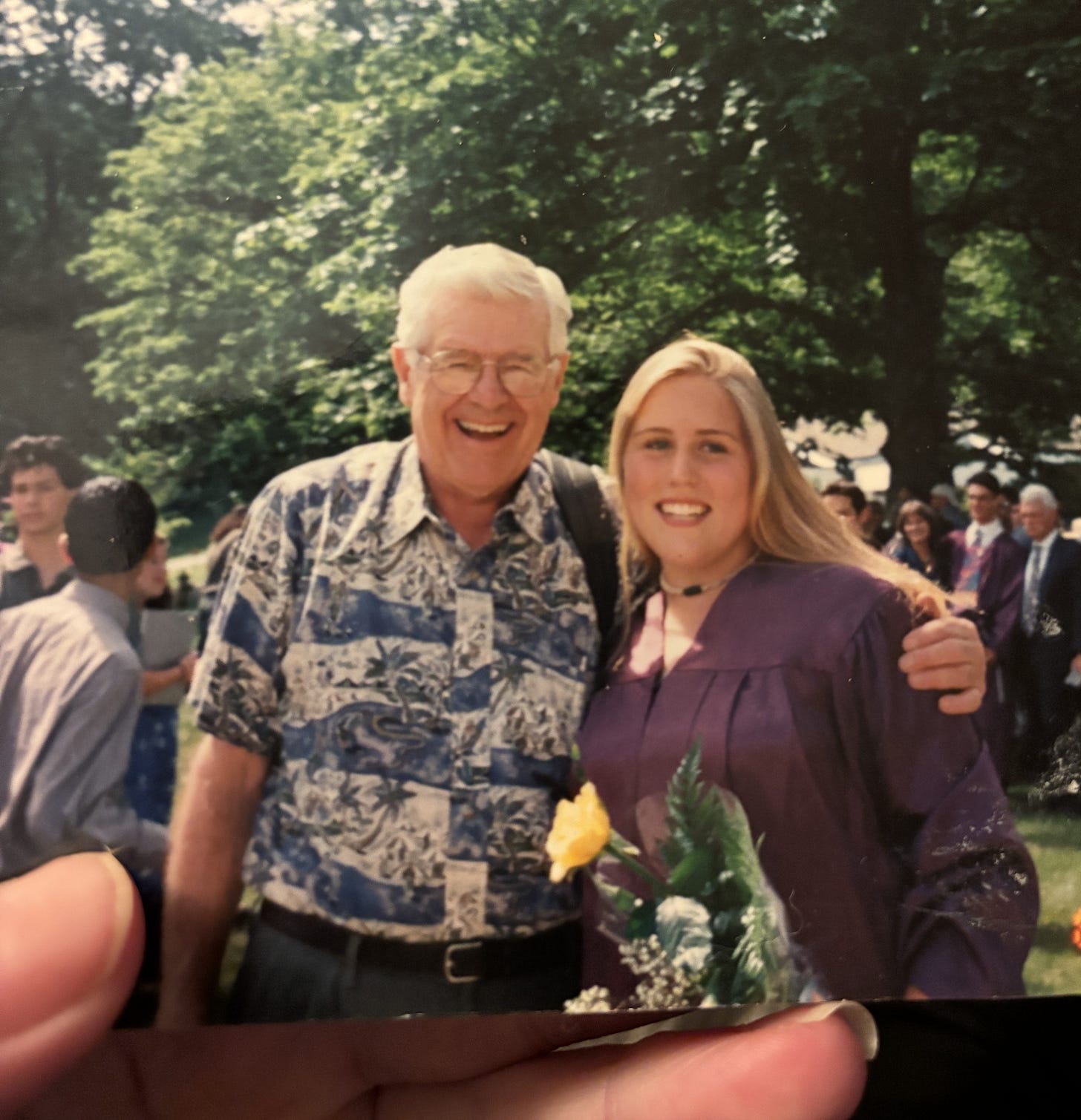 In the summers, he took my cousins and me to his cabin on the Naiscoot River, where the water fed into the Georgian Bay and then Lake Huron. I can still see him sitting in his wooden Amish-made rocking chair in the golden light of sunset. I can hear the scrape of his knife as he filleted the fish he’d caught that day, the gentle hiss of the grill, the way he’d listen quietly while we went on about our teenage lives. I remember his laughing eyes most of all — kind, perceptive, and twinkling with humor.